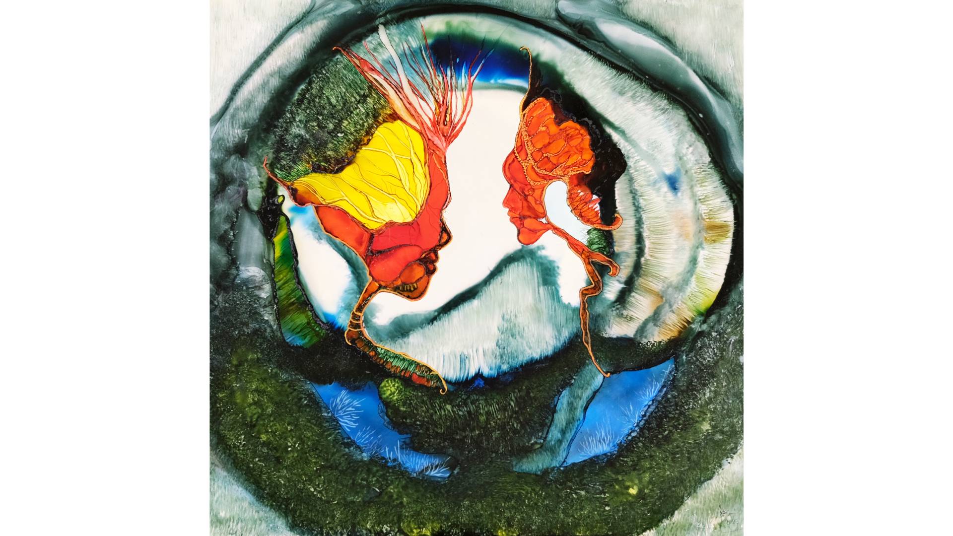 Masalların yalnızca geçmişe ait olmadığını, bellekte biriken izler ve deneyimlerle zamanla yeniden şekillenen zihinsel alanlar olduğunu ele alan sergide, sanatçı imgeleri doğrudan kurmak yerine akışkan yüzeylerde kendiliğinden beliren formları tanıyarak görünür hale getiriyor. İçsel olanın görünür hale gelmesi ve paylaşılabilir bir deneyime dönüşmesi fikrinden yola çıkan sergi, izleyiciye içsel keşiften empatiye uzanan bir alan açıyor.