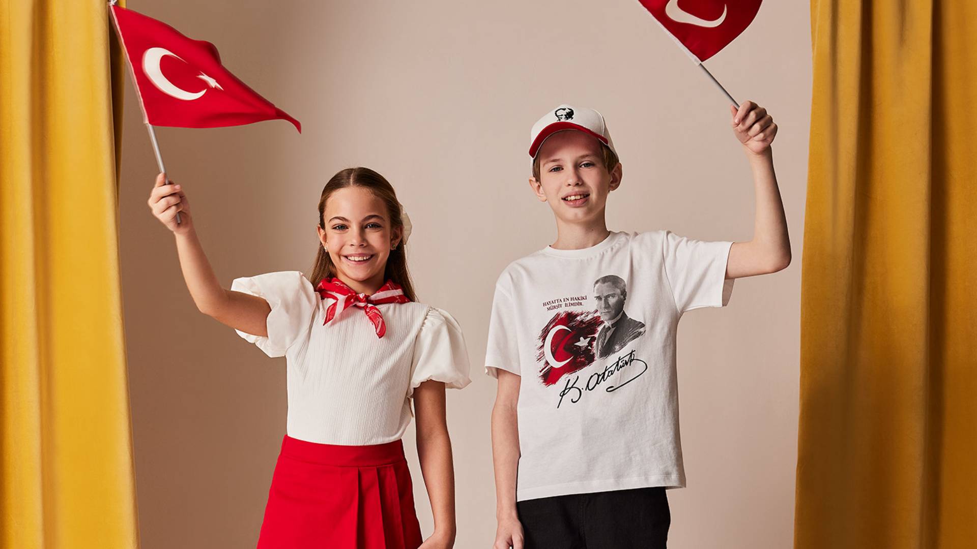Havalı tişörtlerden eteklere, şık elbiselerden aksesuarlara ve rahat ayakkabılara kadar geniş bir ürün yelpazesi sunan koleksiyon, çocukların kendilerini sahnede bir yıldız gibi hissedecekleri modern ve konforlu stillerle buluşuyor. Atatürk’ün mirasını gururla taşıyan minikler, 23 Nisan coşkusuna hazırlanırken aynı zamanda kendi tarzlarını da özgürce ortaya koymanın mutluluğunu yaşıyor.