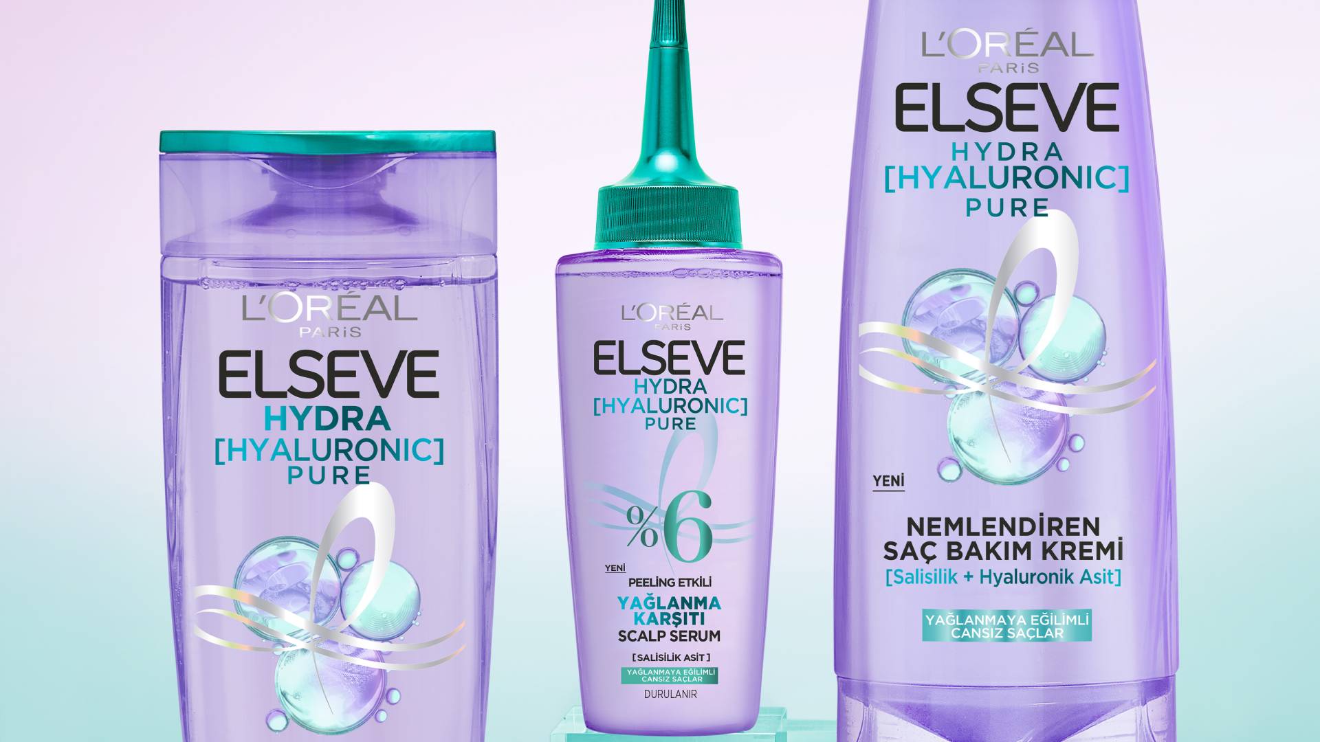 Yeni L’Oréal Paris Elseve Hydra [Hyaluronic] Pure, trend içeriklerle güçlendirilmiş inovatif formülü ile saç dipleri ve saç uçları için tek ürün ile iki etkili bakım sunuyor. Formülündeki arındırıcı Salisilik Asit saç diplerini yağ ve kalıntılardan arındırırken, Hyaluronik Asit saç boylarının nemini geri kazandırıyor. Saçları ağırlaştırmadan 72 saat boyunca* kadar temiz, canlı ve dolgun bir görünüm sunuyor.